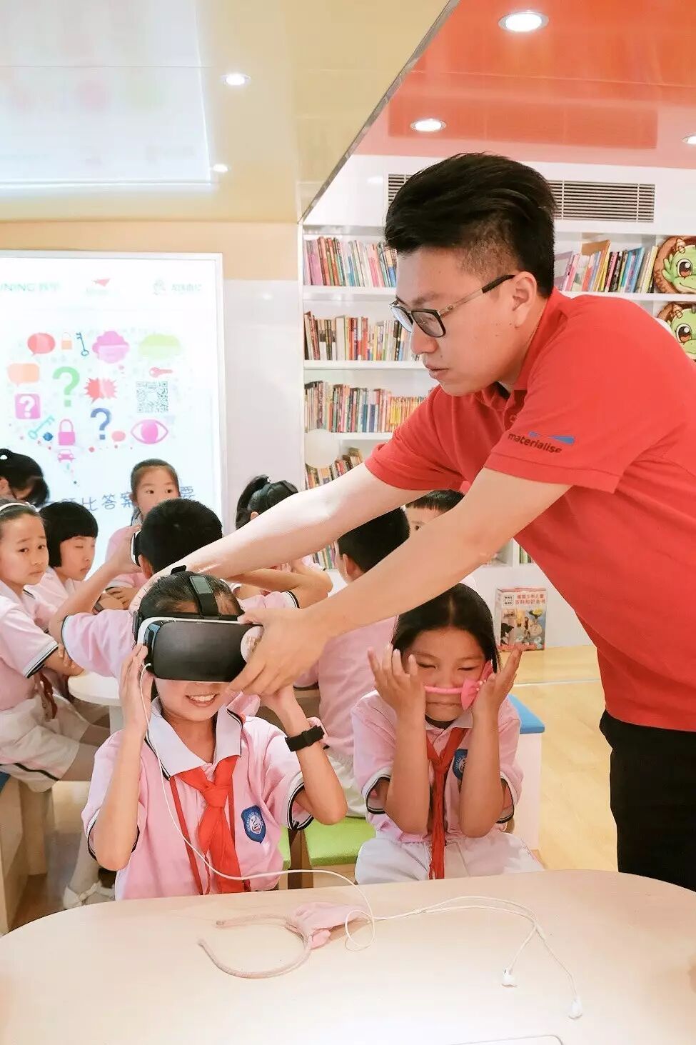 一副小小的眼镜不仅可以轻松地获得知识,也能愉悦人们的身心,在VR体验课上,孩子们通过一副特殊的眼镜,就可以看到不同的立体空间,这种既娱乐又学习的“游戏”方式也让篷篷的小伙伴们都陶醉其中。–